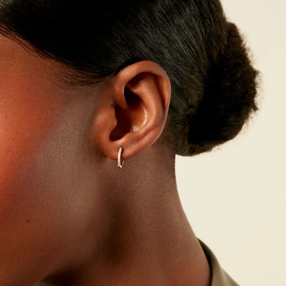 Creoles Or Jaune 375/1000 Pavage Diamants Diametre 10Mm