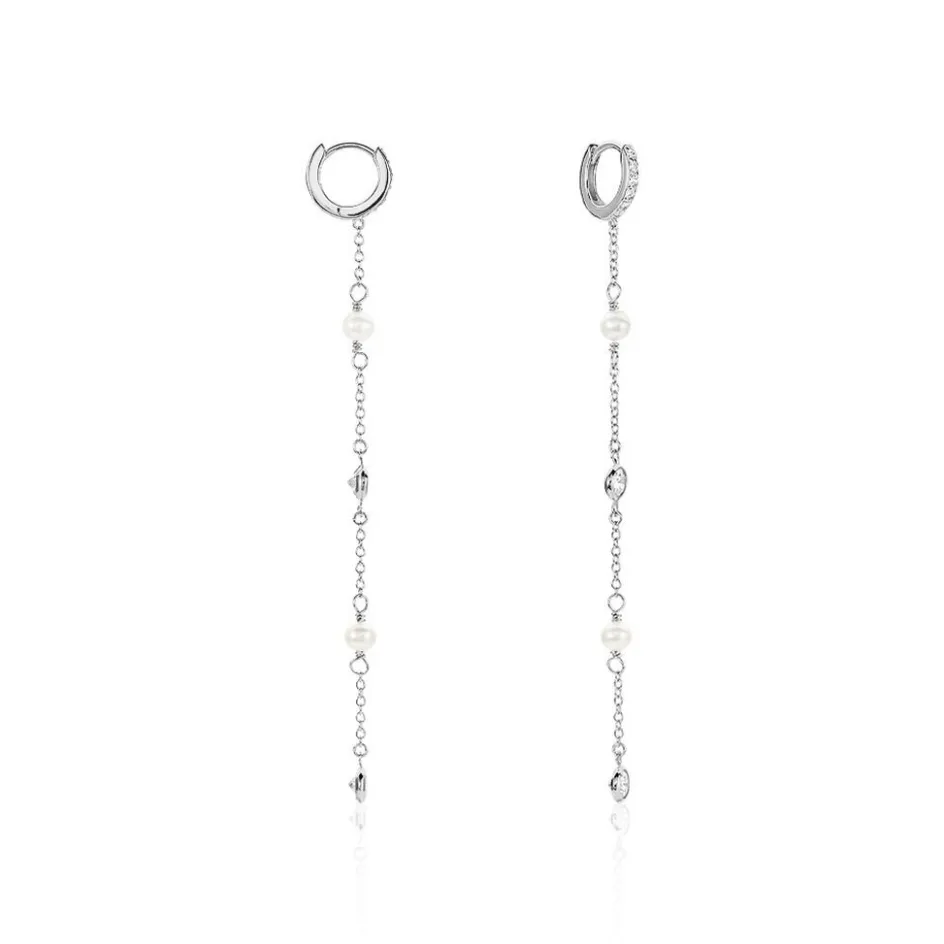 Créoles Argent Rhodié 925/1000 Pendants Perles Et Oxydes De Zirconium 4.8cm