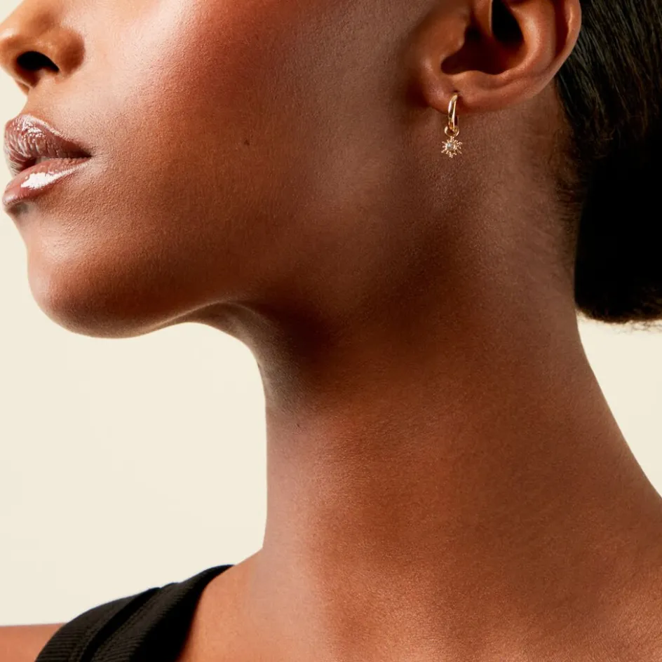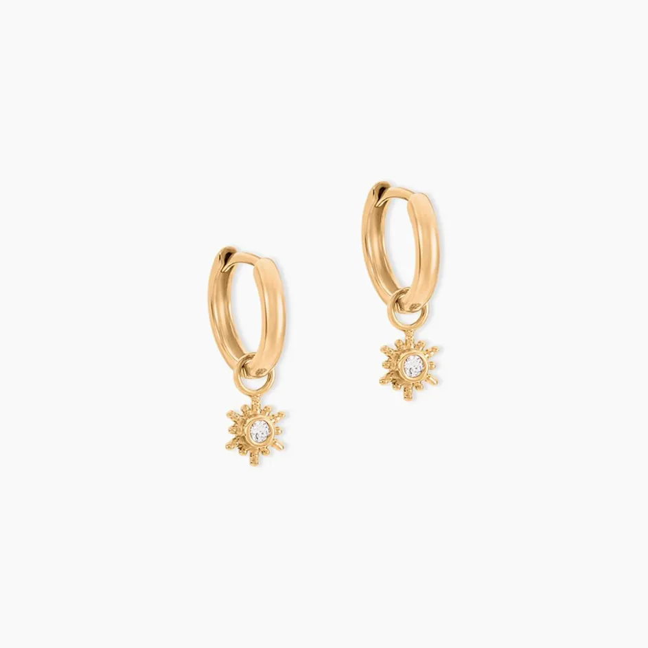 Créoles Plaqué Or Jaune Pampilles Soleil Oxydes De Zirconium Serti Clos Diamètre 12Mm