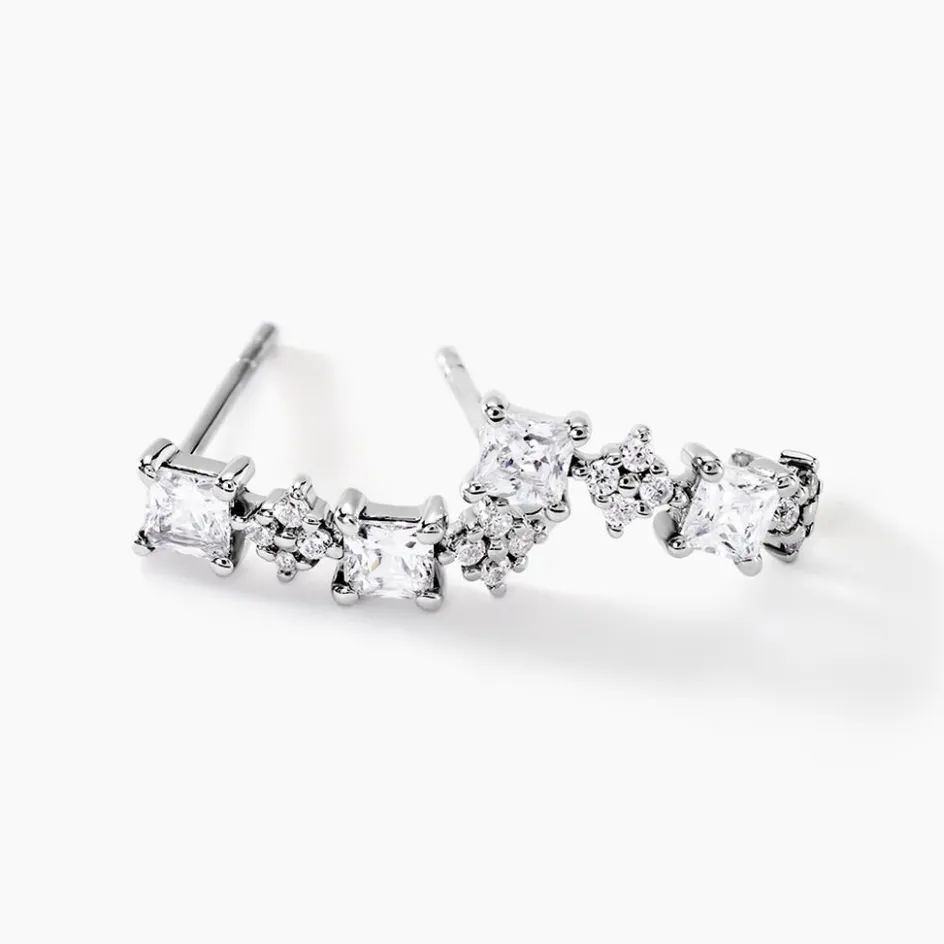 Demi Creoles Or Blanc Motifs Carres Et Losanges Oxydes De Zirconium Serti Griffes 10mm
