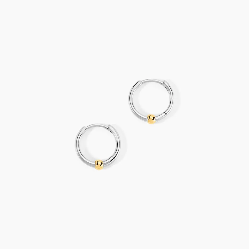 Créoles Or Jaune 375/1000 Et Argent Blanc 925/1000 Motif Boule Diametre 7Mm