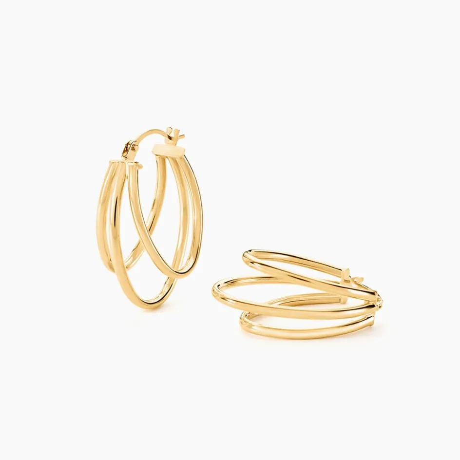 Créoles Or Jaune 375/1000 Ovale Triple Fils Ronds Lisses Longueur 25mm