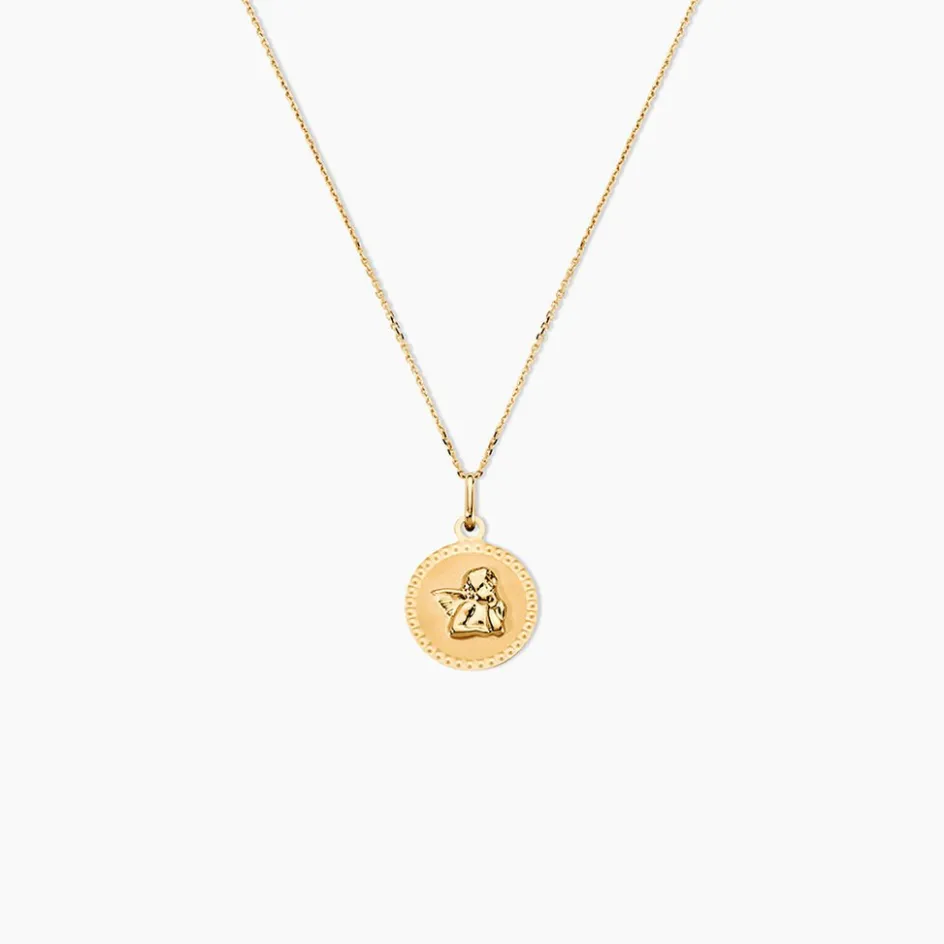 Pendentif Or Jaune 375/1000 Médaille Ronde Ciselée Brillant Motif Ange Penseur