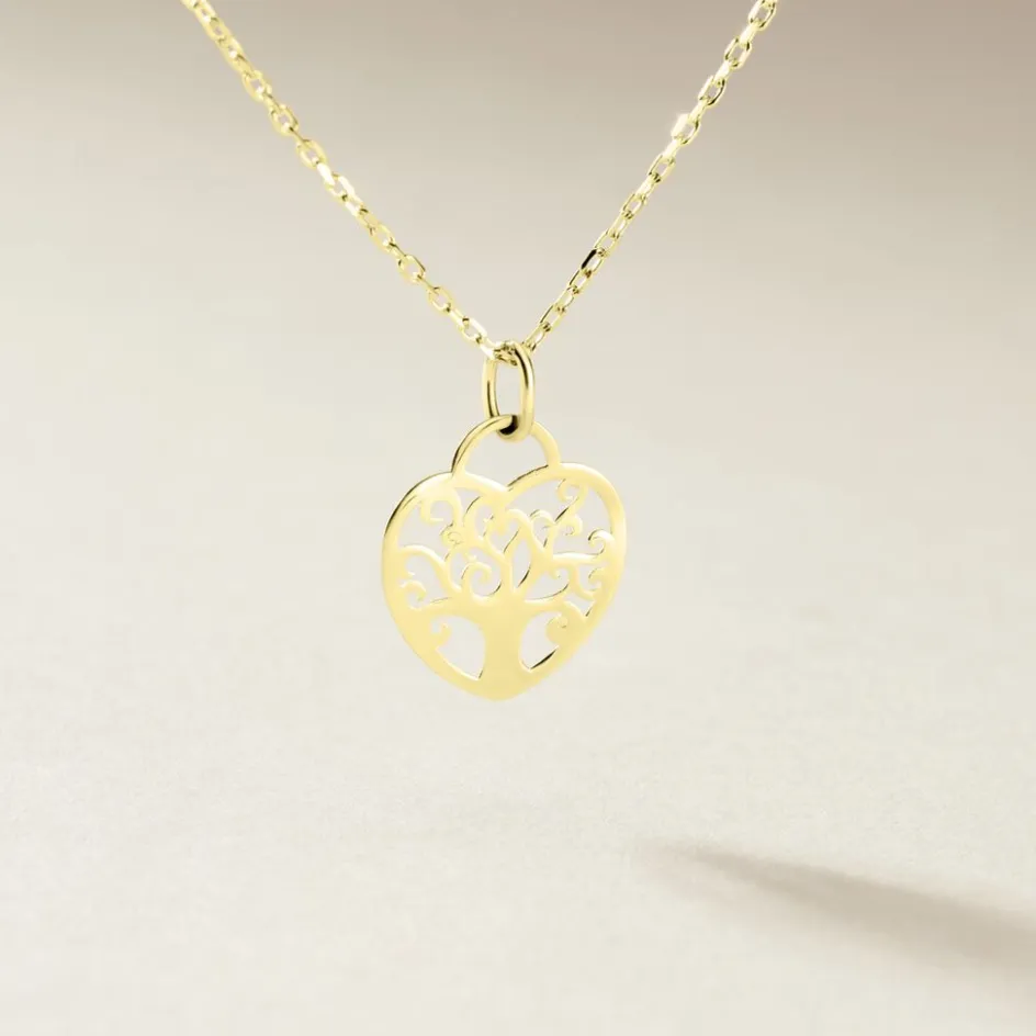 Pendentif Or Jaune 375/1000 Arbre De Vie C艙ur Dentelle