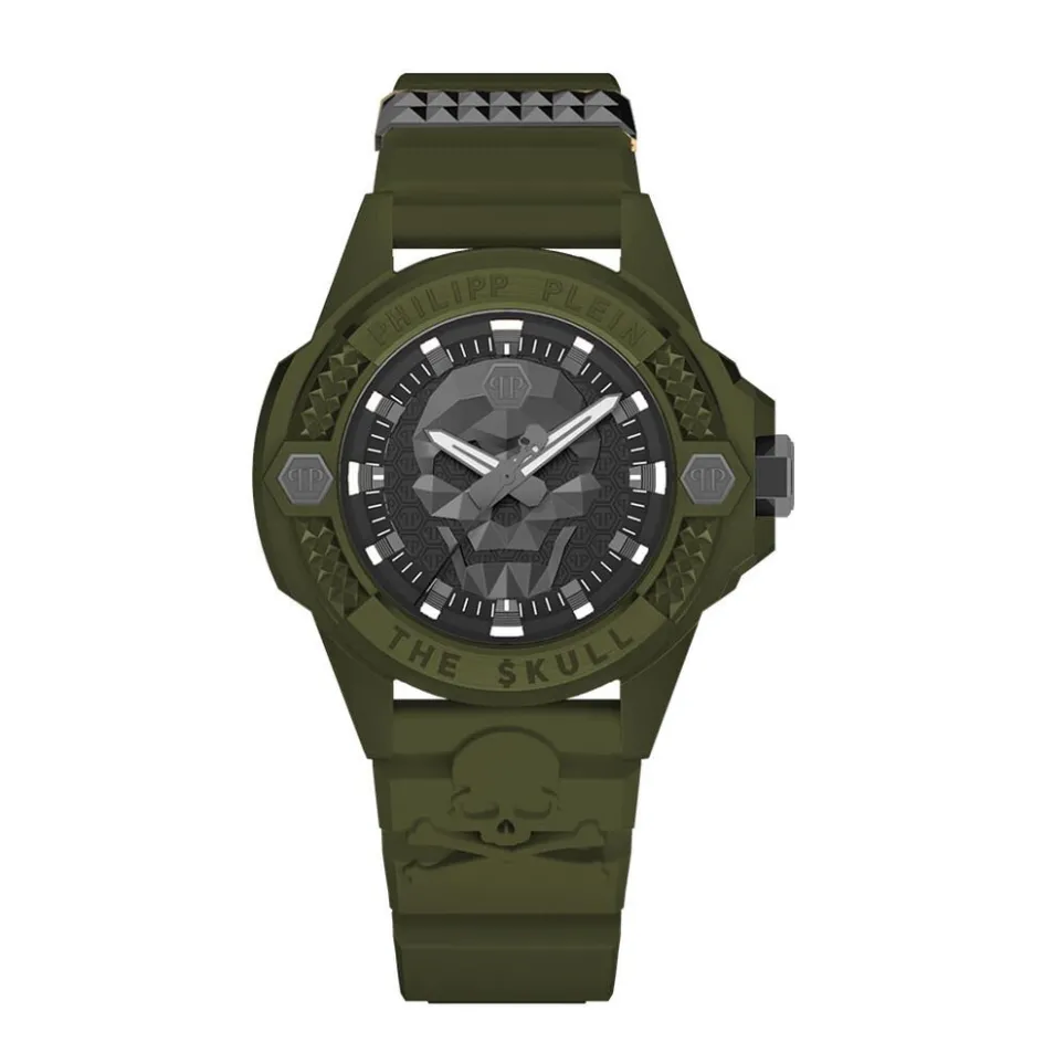 Montre Philipp Plein The Skull Ecoceramic Ceramique Vert Rond Quartz 44mm Fond Noir Bracelet Silicone Vert Pwuba0423
