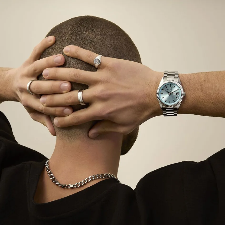 Montre Arctik Episode Acier Argenté Ronde Quartz 37mm Fond Bleu Ciel Lunette Argentee Bracelet Acier Argente Wbd0332-001