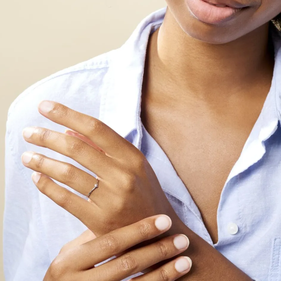 Bague Or Blanc 375/1000 Aile De Mouette Diamant 0.025cts