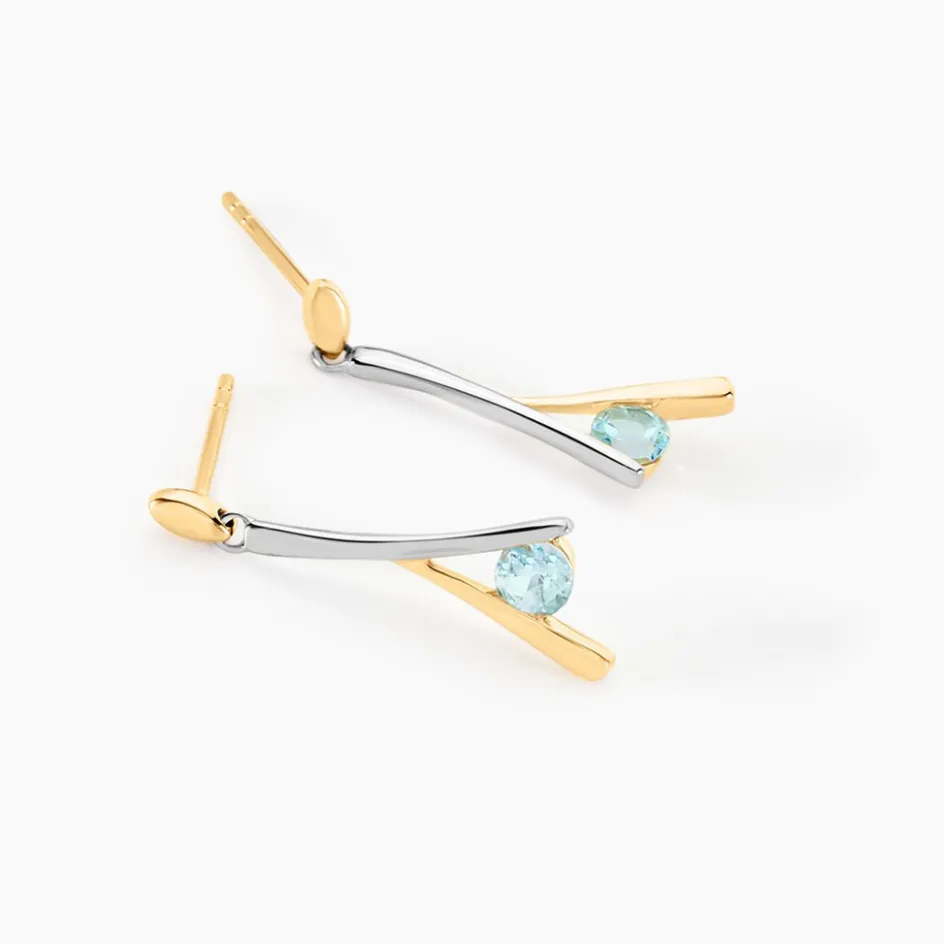 Boucles D’oreilles Pendantes Or Bicolore 375/1000 Topazes Rondes