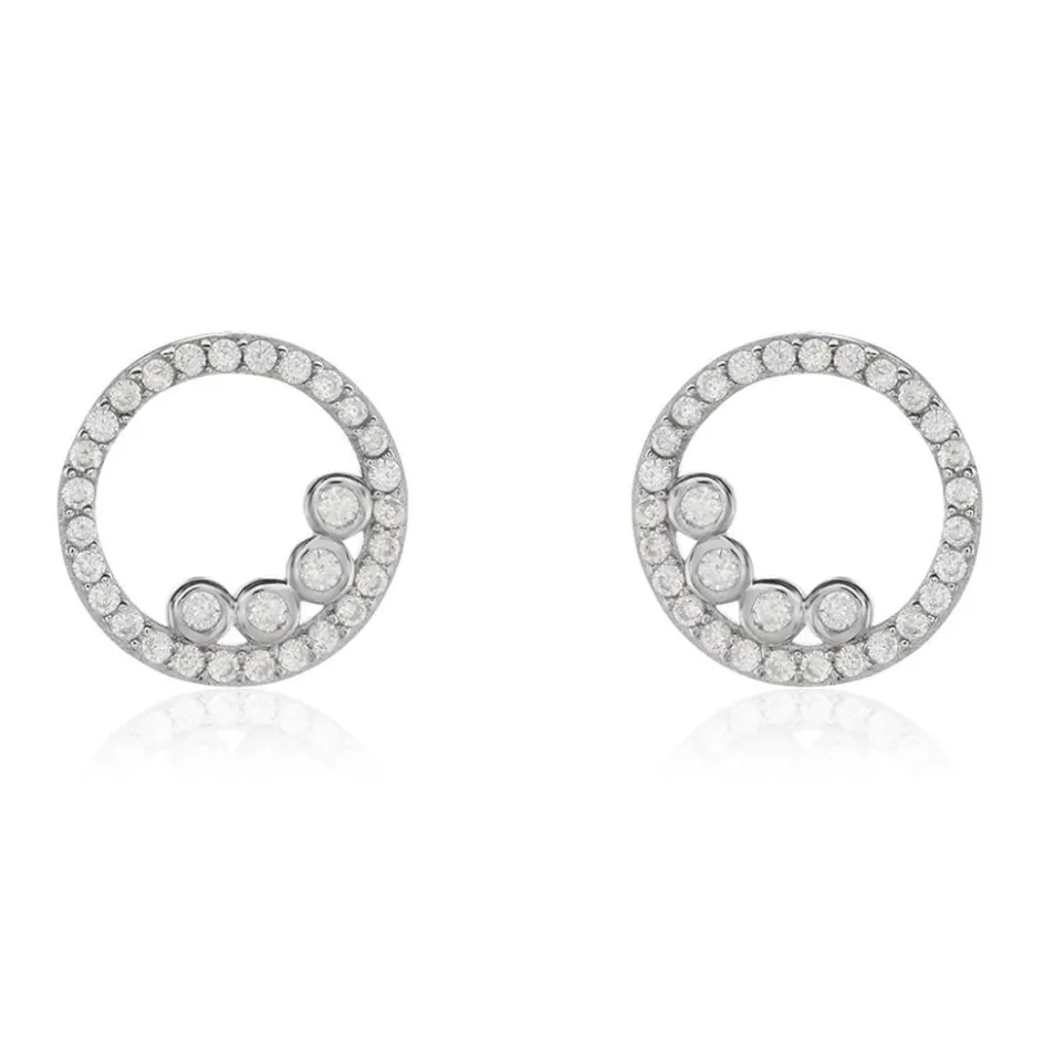 Boucles D’oreilles Puces Argent Blanc 925/1000 Cerles Pavage Et Serti Clos Oxydes De Zirconium