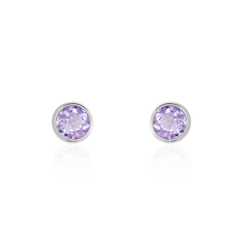 Boucles D’oreilles Puce Or Blanc 375/1000 Améthyste 4mm
