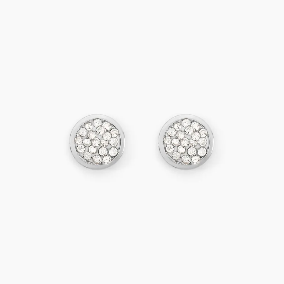Boucles D’oreilles Puces Or Blanc 375/1000 Cercles Strass