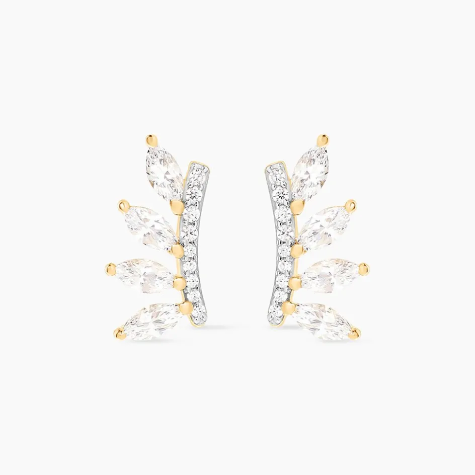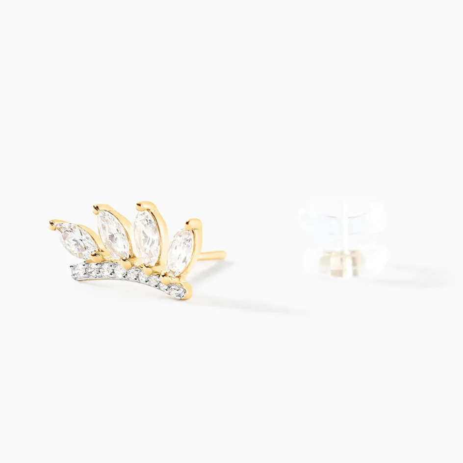 Boucles D’oreilles Puces Or Jaune 375/1000 Oxydes De Zirconium Navettes 1 Cts Serti Griffes