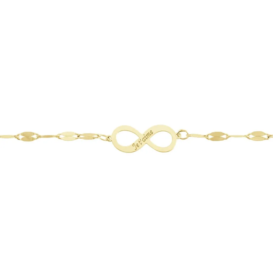 Bracelet Or Jaune 375/1000 Motif Infini Message Je Taime Maille Lumina 16/18cm