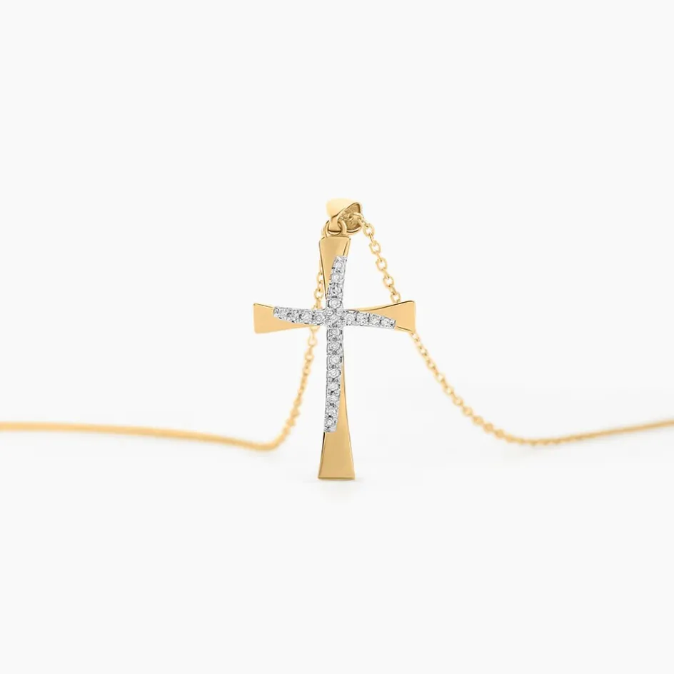 Collier Or Jaune 375/1000 Motif Croix Diamants 42cm