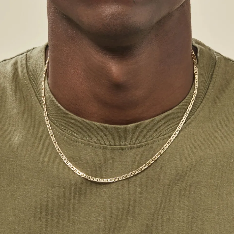 Collier Or Jaune 375/1000 Maille Marine Plate Largeur 3.5mm 50cm