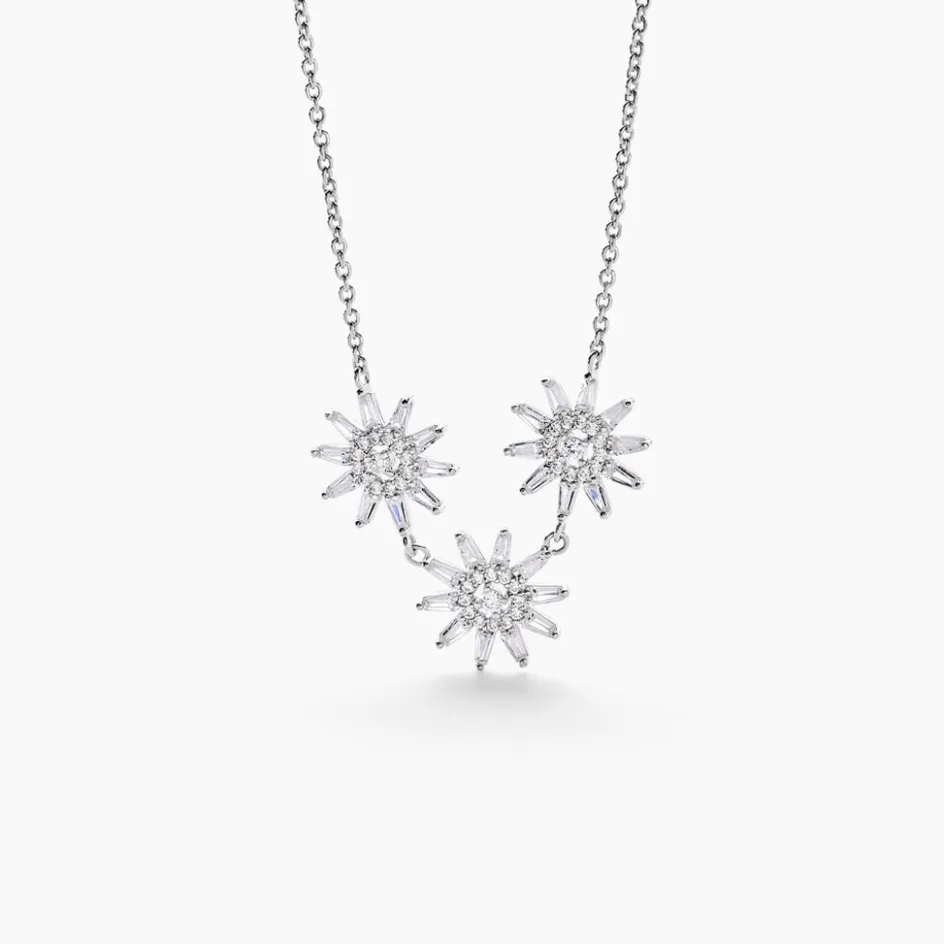 Collier Argent Blanc 925/1000 Triple Fleur Pavage Oxydes De Zirconium Maille Forçat 42+3cm