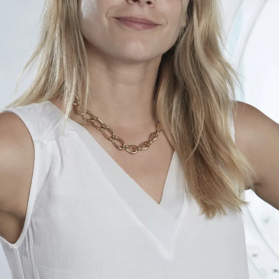 Collier Acier Inoxydable Jaune Maillons Ovales Applatis 45cm