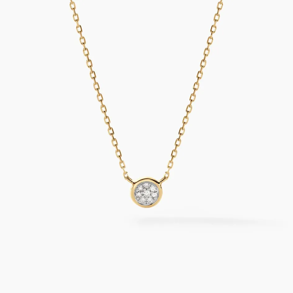 Collier Or Jaune 375/1000 Pastille Pavage Diamants 0.018cts 42cm