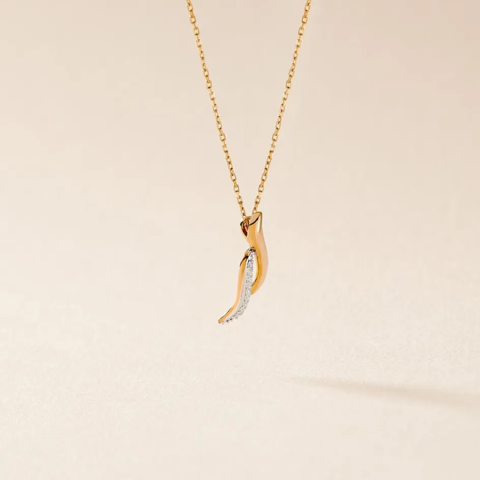 Collier Or Jaune 375/1000 Vague Diamants 0.023cts Micro Serti Maille Forçat Ronde 40+2cm