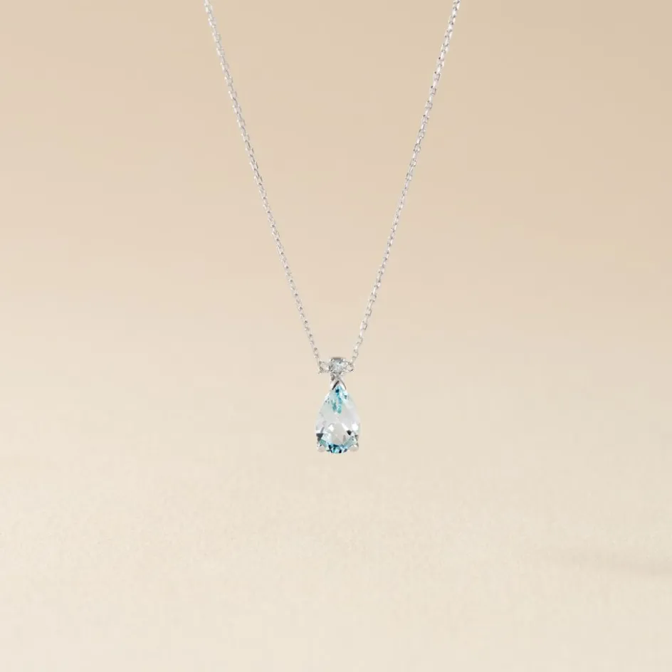 Collier Or Blanc 375/1000 Maille Forçat Topaze Bleue Poire Serti Griffes 40cm