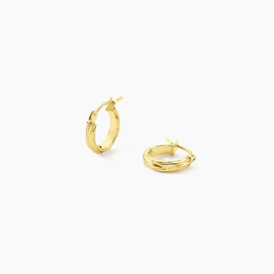 Créoles Or Jaune 375/1000 Fil Demi Jonc Effet Diamanté Largeur 3mm Diamètre 8mm