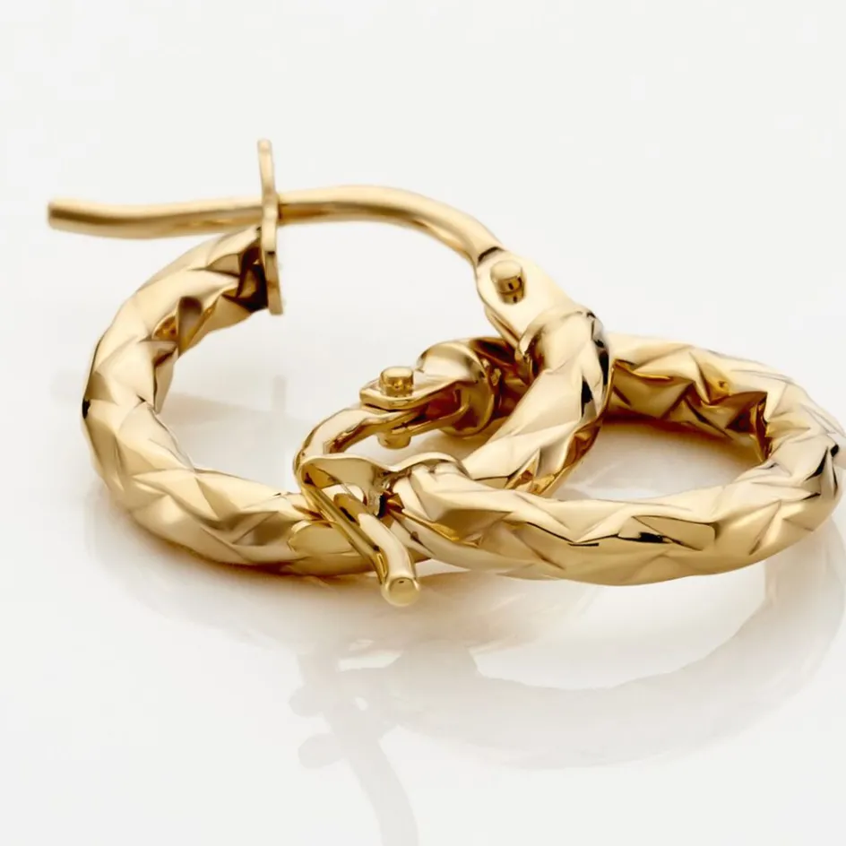 Créoles Or Jaune 375/1000 Fil Rond Diamante Epaisseur 2mm Diamètre 8mm