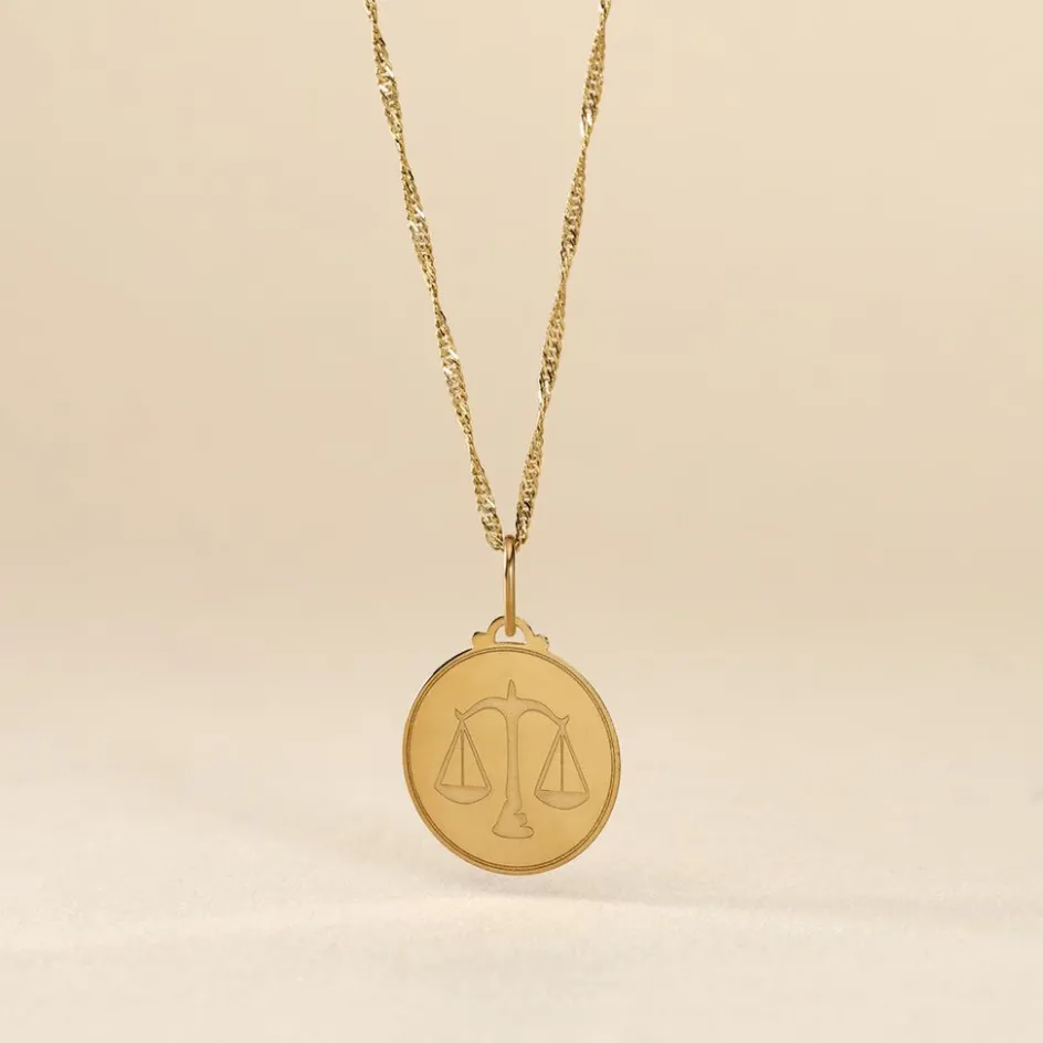 Pendentif Or Jaune 375/1000 Medaille Ronde Balance