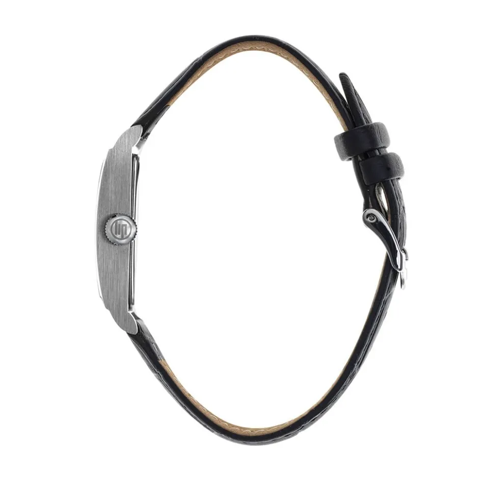 Montre Lip Churchill T24 Acier Argente Rectangulaire Quartz 23.5mmx41.5mm Fond Argente Bracelet Cuir De Vache Noir 671927