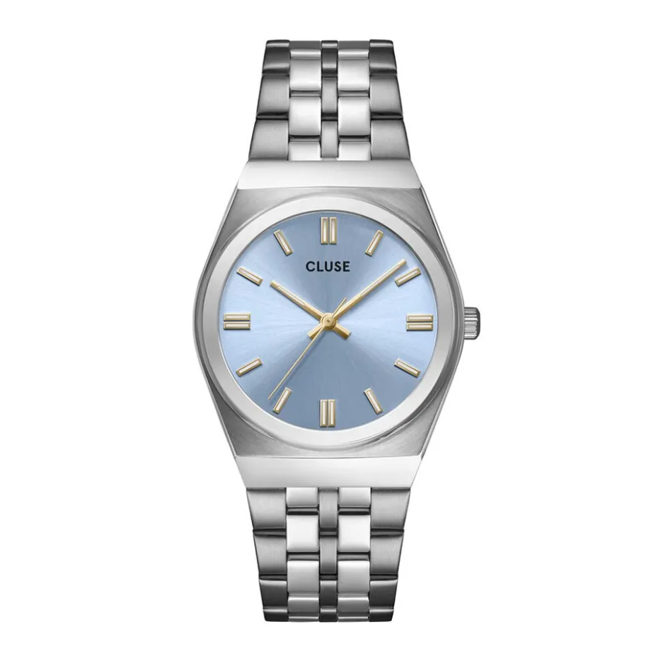 Montre Cluse Retro 70’s Acier Inoxydable Argenté Ronde Quartz 40x33mm Fond Bleu Bracelet Acier Inoxydable Argenté Cw35102