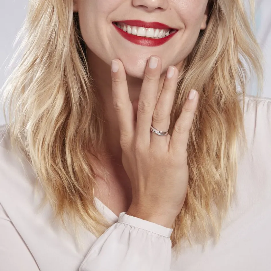 Bague Or Blanc 375/1000 Forme Entrelacée Pavage Diamants