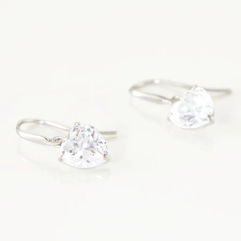 Boucles D’oreilles Or Blanc 375/1000 Oxyde De Zirconium Forme C艙ur Pm