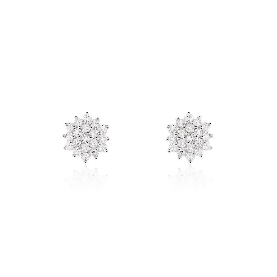 Boucles D’oreilles Puces Or Jaune 375/1000 Choux Diamants 0.28cts Serti Griffes