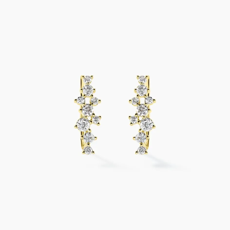Boucles D’oreilles Grimpantes Or Jaune 375/1000 Diamants Synthetiques 0.131cts Sertis Griffes