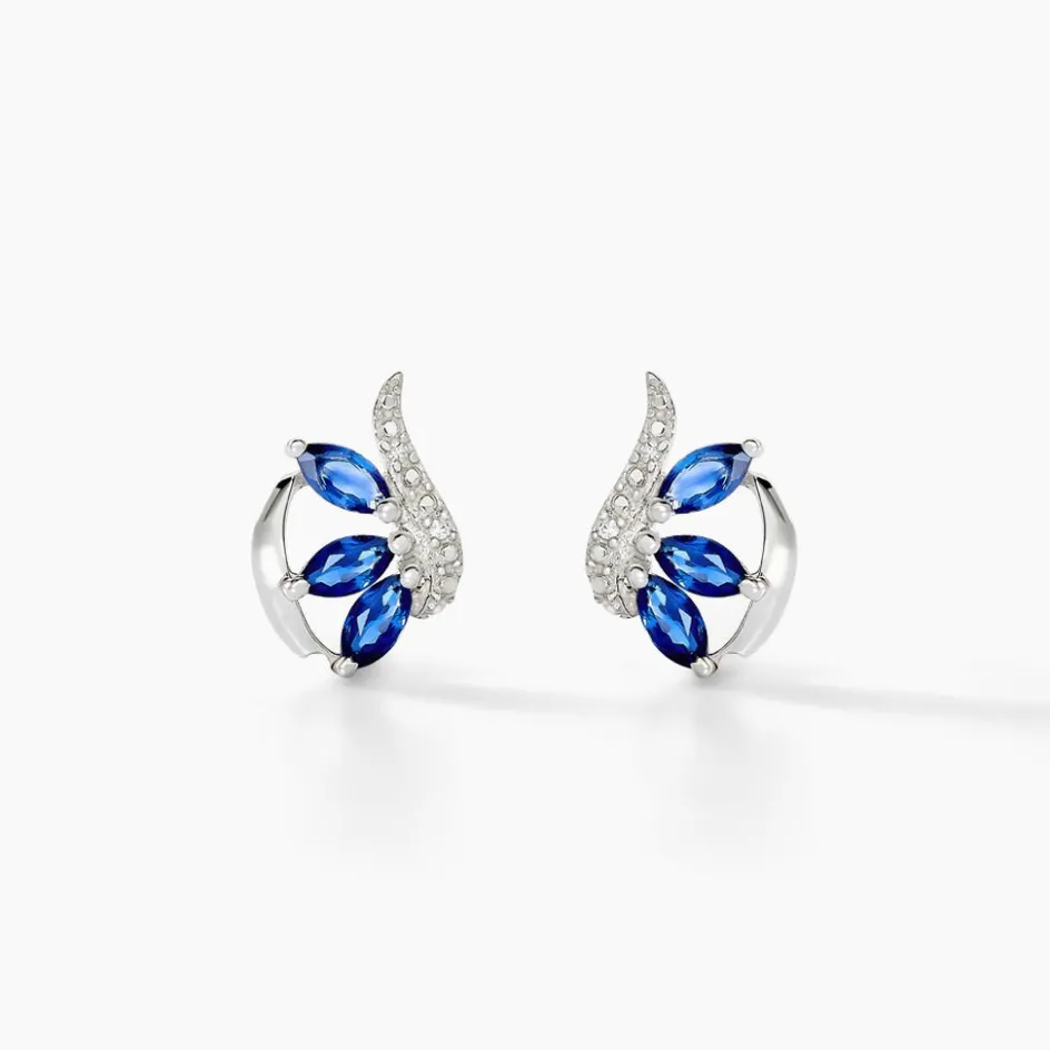 Boucles D’oreilles Or Blanc 375/1000 Pétale Trilogie Saphirs Et Diamants