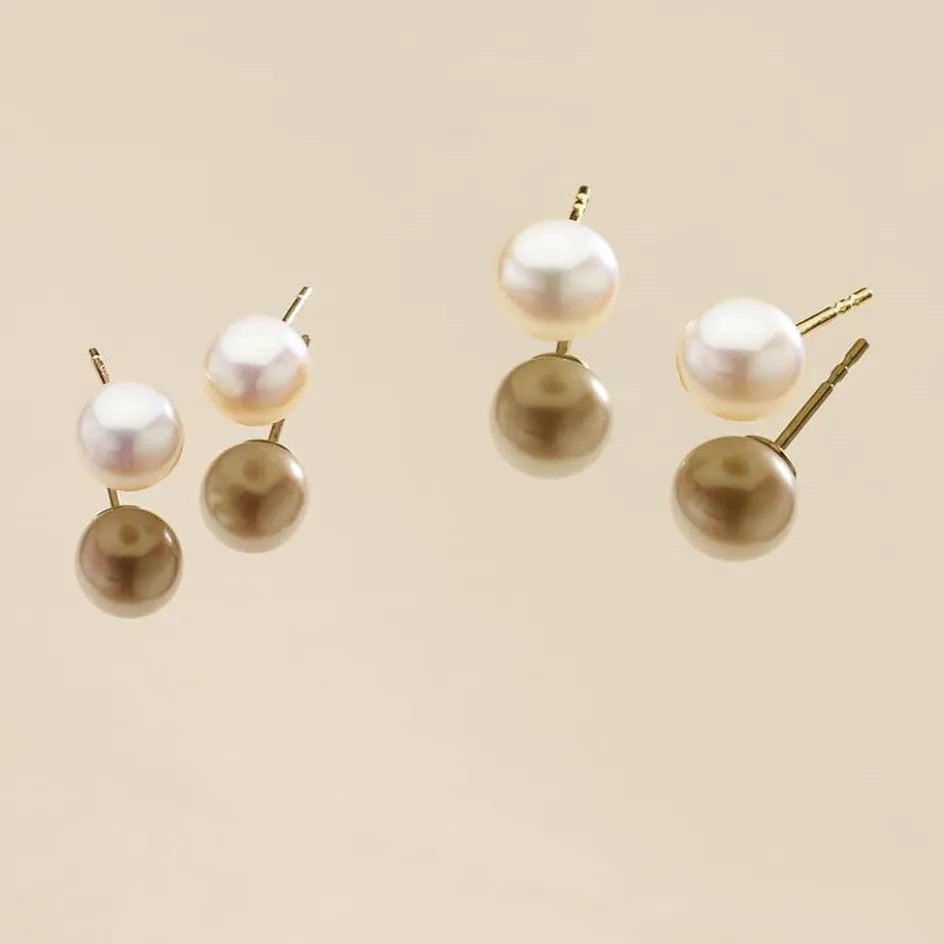 Boucles D’oreilles Or Jaune 375/1000 Perles De Culture Rondes Nacres 6/6.5mm
