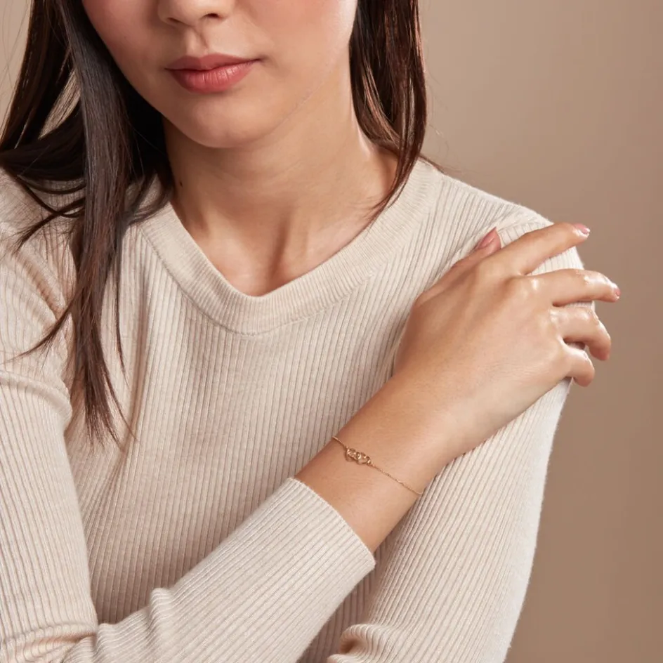 Bracelet Or Jaune 375/1000 Double C艙urs Ajoures Avec Message Effet Satine Et Glitter Maille Jaseron 16+2cm