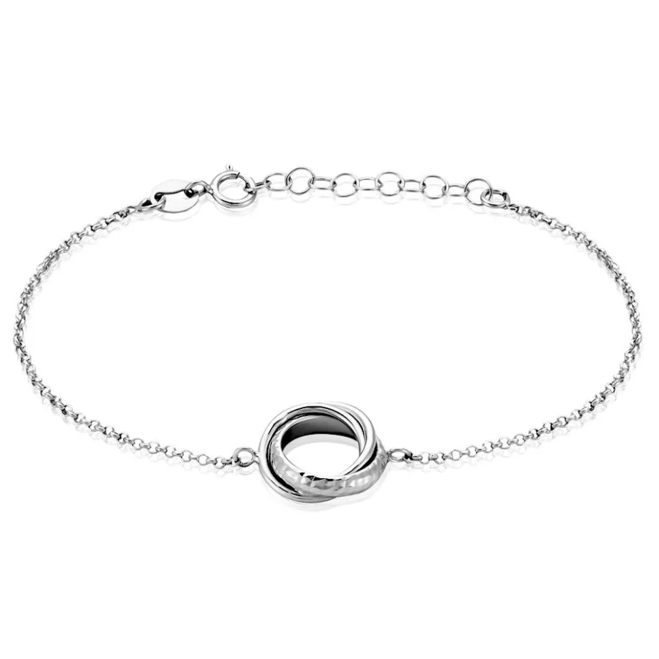 Bracelet Argent Blanc 925/1000 Triples Cercles Entrelacés Effet Diamanté Maille Forçat 19cm