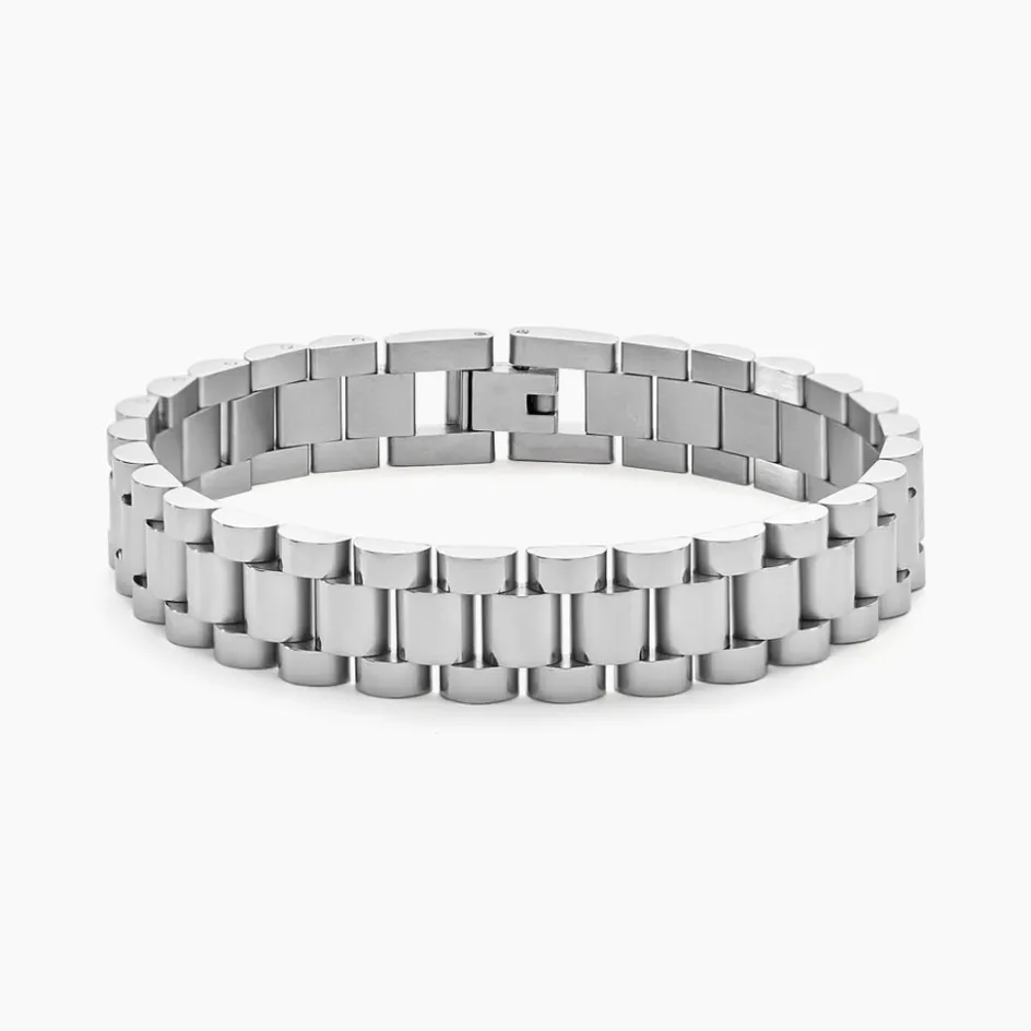 Bracelet Acier Inoxydable Blanc Maille Fantaisie Largeur 12mm 21cm