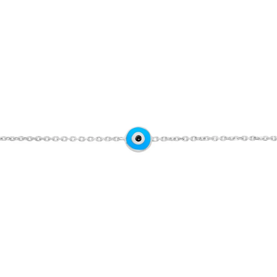 Bracelet Argent Blanc 925/1000 艙il Grec Email Bleu Maille Forcat 16+3cm