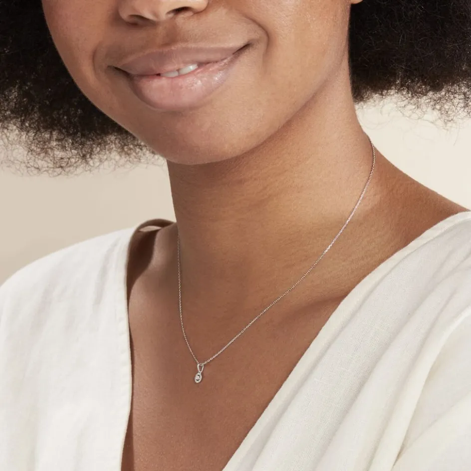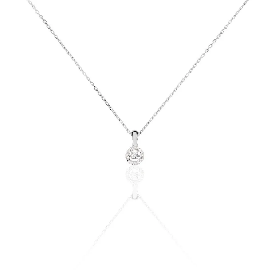 Collier Or Blanc 375/1000 Entourage Diamant 0.02cts 42cm