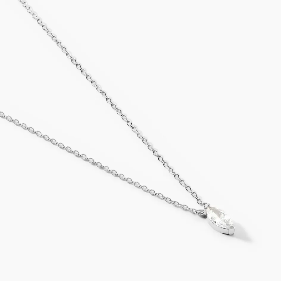 Collier Argent Blanc 925/1000 Oxydes De Zirconium Navette Maille Forçat 42+3cm