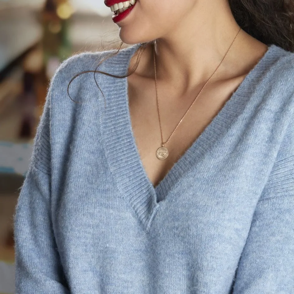 Collier Plaqué Or Jaune Pastille Mate Signe Astrologique Capricorne Oxydes De Zirconium Chaine Forcat 50cm