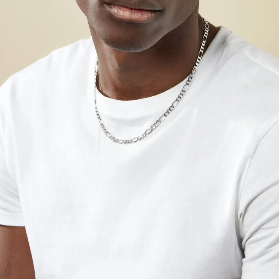 Collier Maille Argent Blanc 925/1000 Maille Alternee 1/3 Largeur 5.1mm 50cm