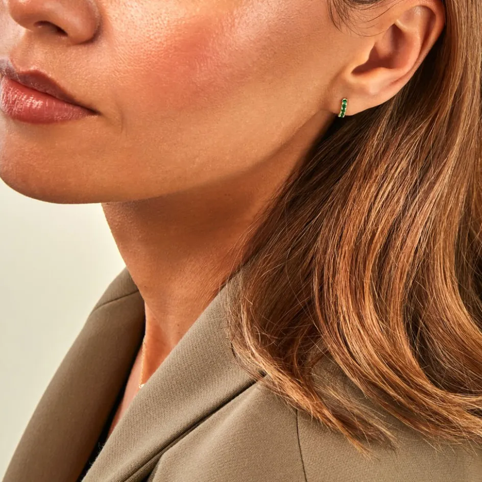 Créoles Or Jaune 375/1000 Pavage Oxydes De Zirconium Vertes Diametre 7Mm