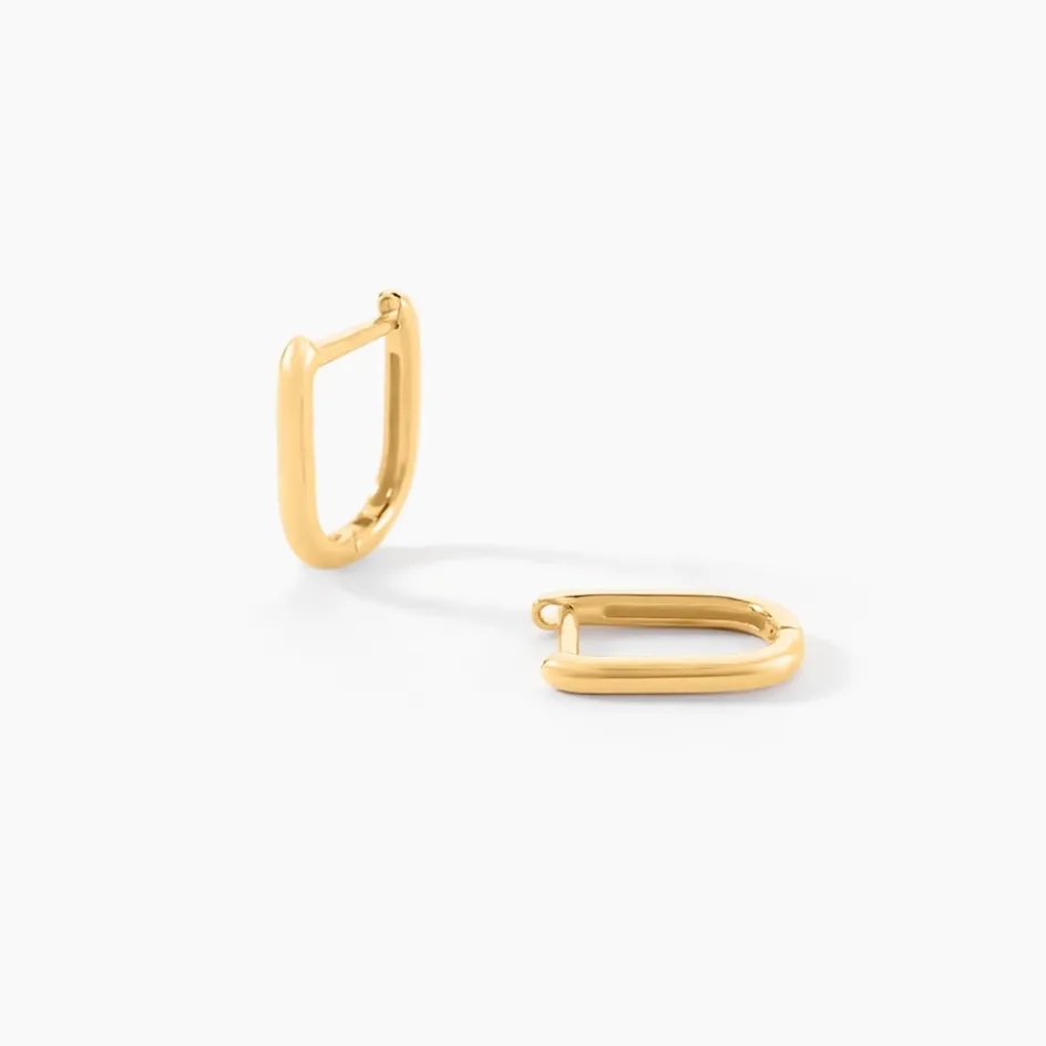 Creoles Or Jaune 375/1000 Rectangle Fil Rond Longueur 9mm Largeur 7mm Et Epaisseur De Fil 1.6mm