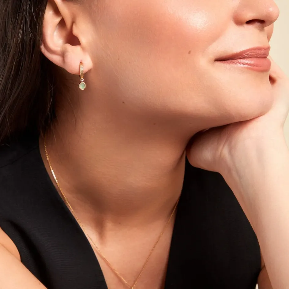 Créoles Plaqué Or Jaune Striées Aventurine Verte Serti Clos Diamètre 10mm