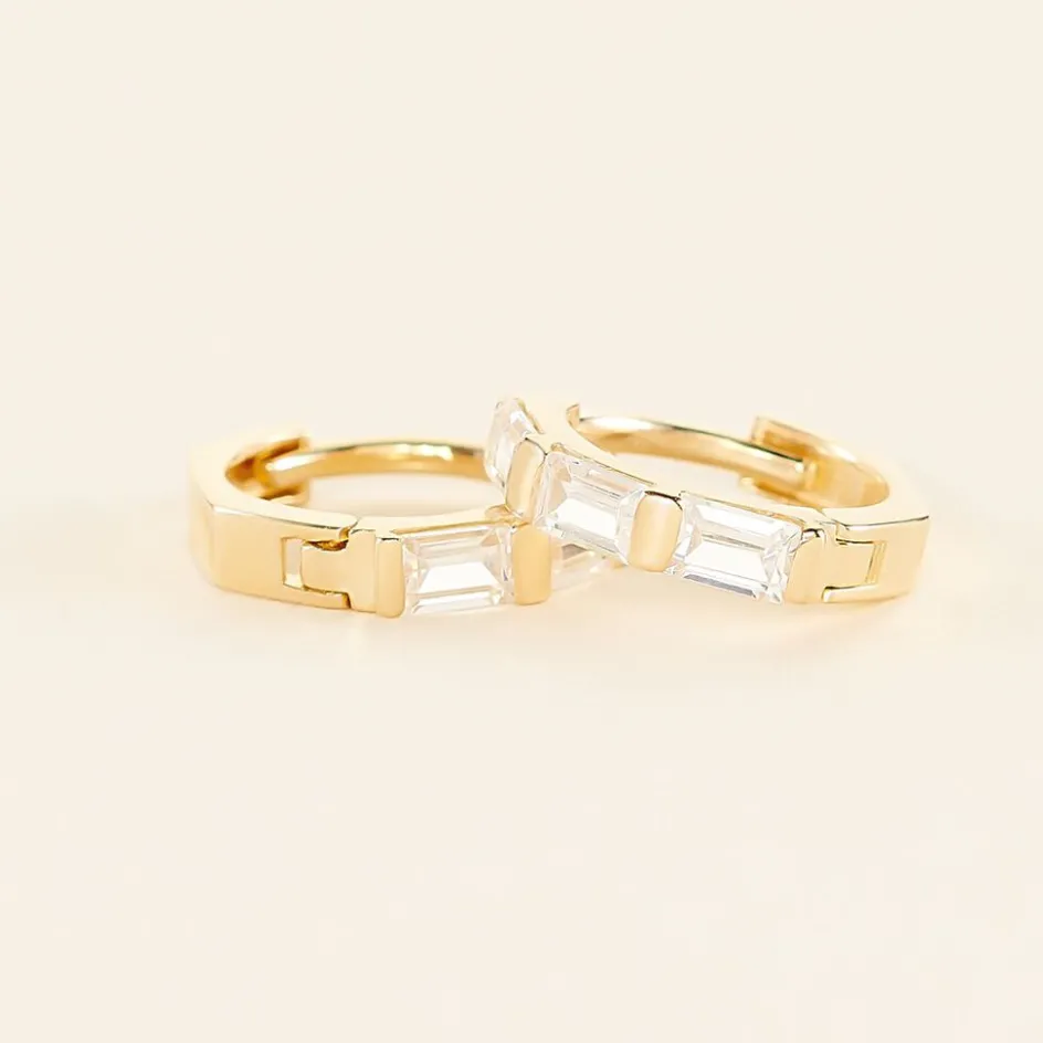 Créoles Or Jaune 375/1000 Oxyde De Zirconium Baguette Serti Barette Diamètre 8mm
