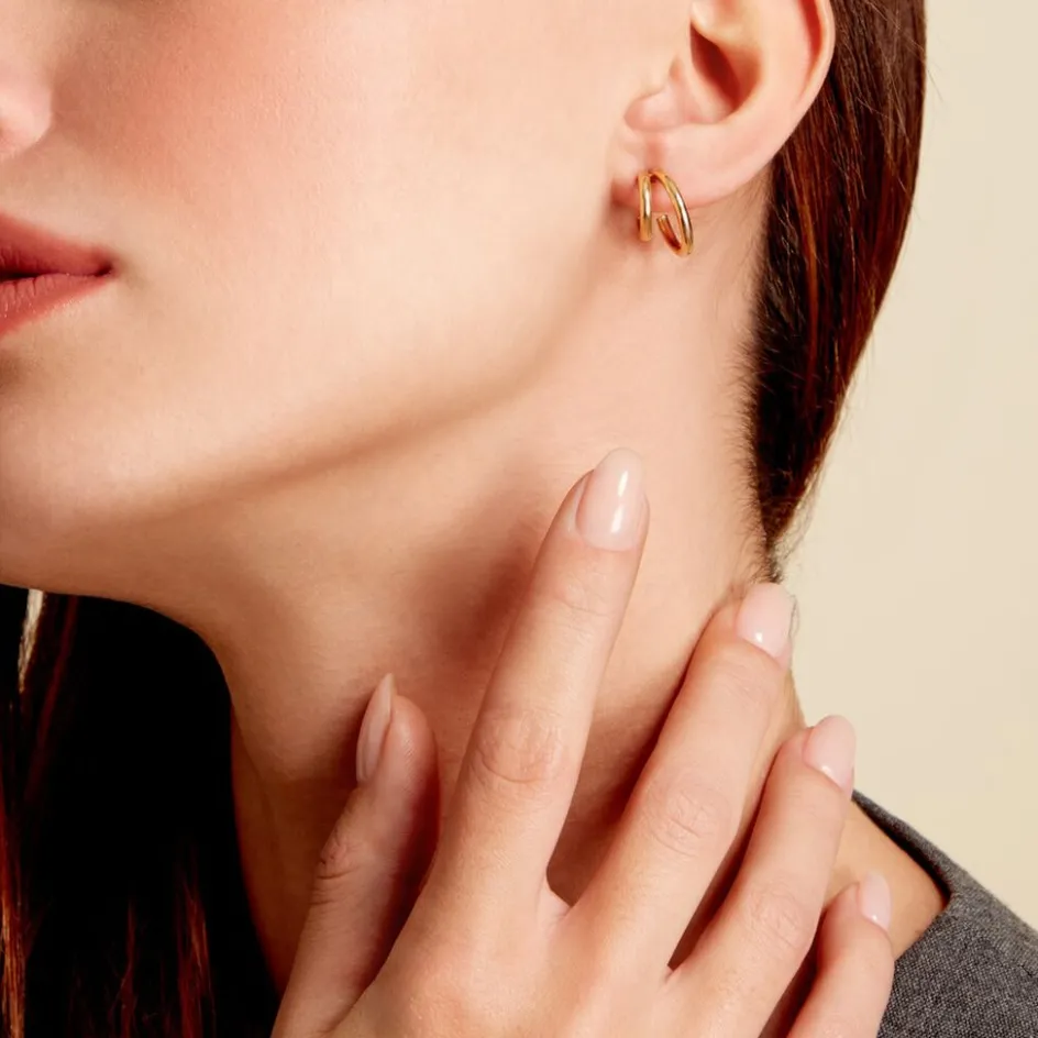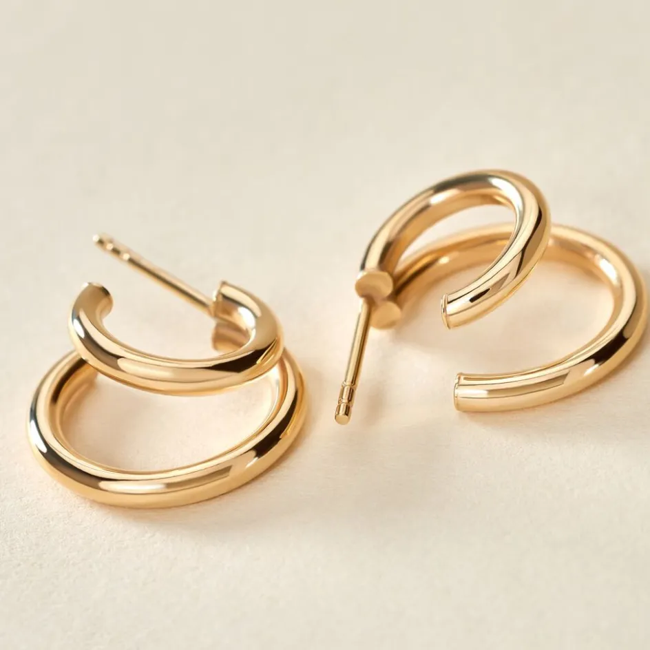 Creoles Or Jaune 375/1000 Demi Cercle Petit Et Grand Fil Rond Demi Jonc Bombe Lisse Longueur 16mm