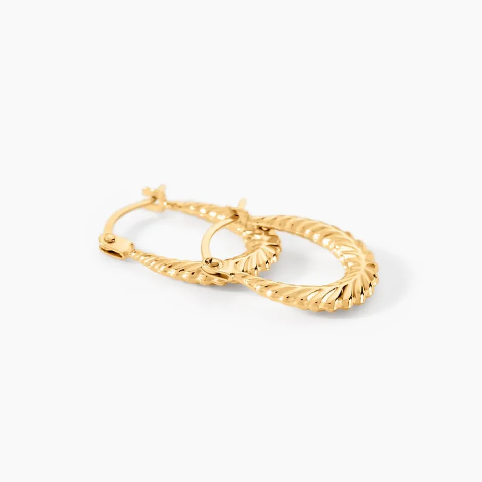 Creoles Or Jaune 375/1000 Fil Triangle Ovale Motif Laurier Longueur 14mm Largeur 12mm