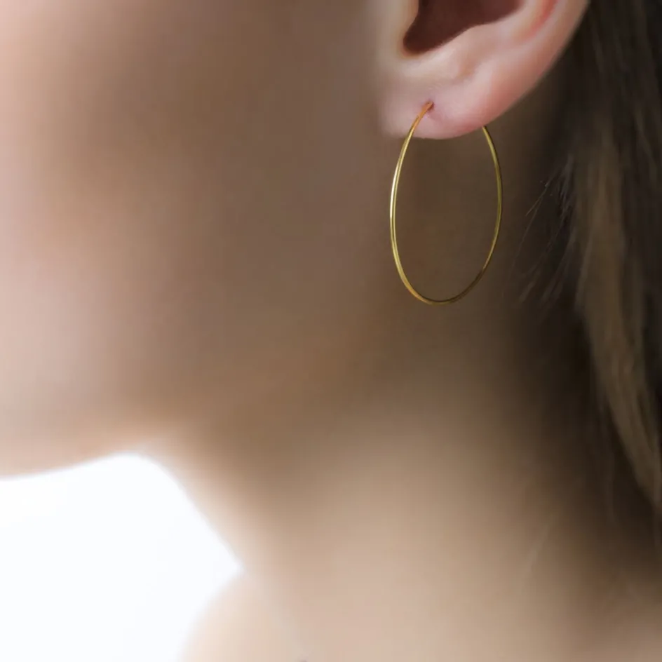 Créoles Or Jaune 750/1000 Fil Flexible Lisse Largeur 0.8mm Diamètre 30mm